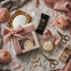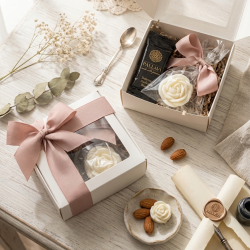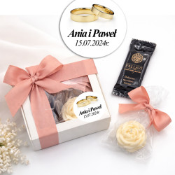 Podziękuj swoim gościom w sposób, który zapadnie im w pamięć na długo. Prezentujemy wyjątkowy komplet pamiątkowy, który łączy w sobie rzemieślnicze piękno naturalnej świecy sojowej z chwilą słodkiej przyjemności. To idealny wybór na ślub, wesele oraz inne eleganckie uroczystości, gdzie liczy się styl, jakość i naturalne składniki.