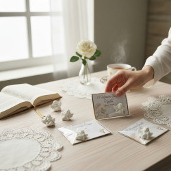 Ważne: Aniołki występują w kilku wzorach (różne pozy), które wysyłamy losowo, tworząc piękną i różnorodną kolekcję dla Twoich gości.