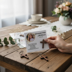 Pamiątka Komunii Świętej PODZIĘKOWANIE dla Gości + BRELOK KRZYŻ+ ZDJĘCIE BS003795