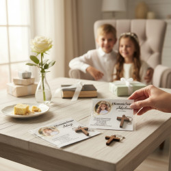 Spraw, aby ten wyjątkowy dzień zapadł w pamięć Twoim bliskim na dłużej. Oferujemy eleganckie, w pełni personalizowane podziękowanie, które łączy w sobie duchowy charakter uroczystości z osobistym akcentem.