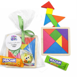 Mądry Upominek Urodzinowy – Edukacyjny Tangram - gra układanka drewniana i Słodka Niespodzianka! 🧩🍬