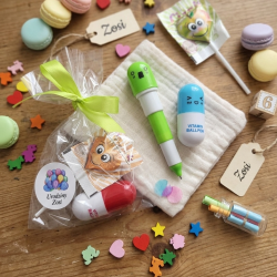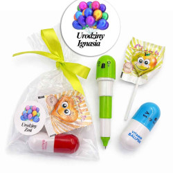 Szukasz upominku, który zaskoczy rówieśników Twojego dziecka? Nasz zestaw to połączenie praktycznego gadżetu z nutką słodyczy. Idealny jako podziękowanie dla gości lub "poczęstunek" do rozdania w przedszkolu i szkole!