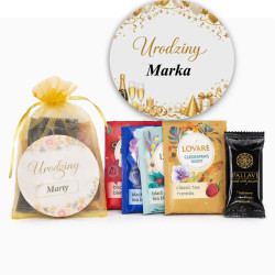 - Aromatyczna Herbata LOVARÉ: Jedna saszetka wysokiej jakości herbaty (mix smaków: owocowe, czarne lub zielone – pakowane losowo, by zaskoczyć różnorodnością).