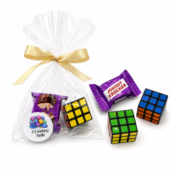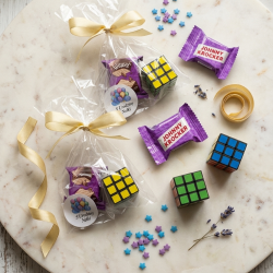 Wyjątkowe Podziękowanie dla Gości – Kreatywny Zestaw z Mini Kostką Logiczną! Szukasz inteligentnego i smacznego upominku dla małych gości? Nasz zestaw to strzał w dziesiątkę! Połączenie kultowej łamigłówki z pysznym wafelkiem to gwarancja udanej zabawy i radości dla każdego dziecka z okazji urodzin, komunii czy spotkania w szkole.