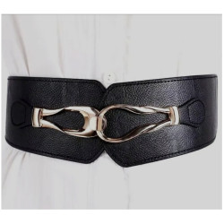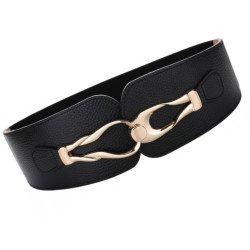 Podkreśl swoją talię i nadaj swojej stylizacji charakteru! Czarny pasek na szerokiej gumce zdobiony złotą klamrą.