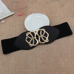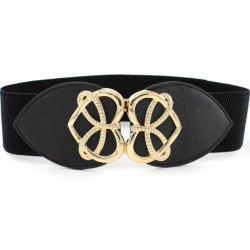 Podkreśl swoją talię i nadaj swojej stylizacji charakteru! Czarny pasek na szerokiej gumce zdobiony złotą klamrą.