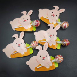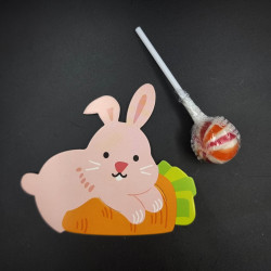 Uroczy upominek lizak z etykietą w kształcie Różowego króliczka zajączka z marchewką