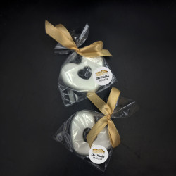 Całość zapakowana w celofan, z dowolną PERSONALIZOWANĄ NAKLEJKĄ , zdobiona wstążką!