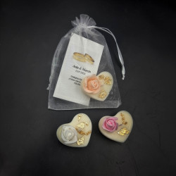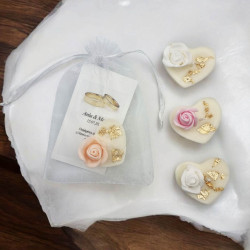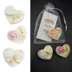 Świeczka sojowa SERCE ze złoceniem oraz piankową ozdobną różyczką - idealny upominek dla gości