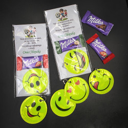 ODBLASK EMOTIKON DWUSTRONNY + CZEKOLADKA MILKA + TEKTURKA Z ŻYCZENIAMI NA DZIEŃ CHŁOPAKA