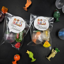 Gumowa Figurka/ ZABAWKA STIKEEZ + owocowa galaretka + DOWOLNY TEKT NA NAKLEJCE