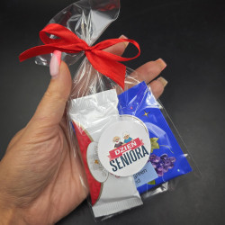 Paczuszka upominków to gotowy do wręczenia prezent - starannie zapakowany w woreczek celofanowy z piękną satynową kokardką.