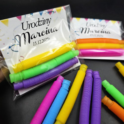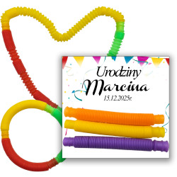 Urodzinowe rurki sensoryczne na personalizowanej tekturce. Cena za 1 szt gotowego produktu.