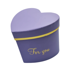 Fioletowe eleganckie pudełko w kształcie serca ze złoceniami i napisem for you.