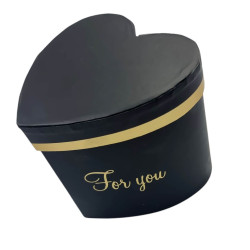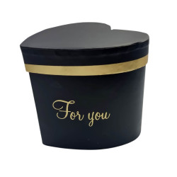 Czarno-złote eleganckie pudełko z pokrywką w kształcie serca z napisem for you.